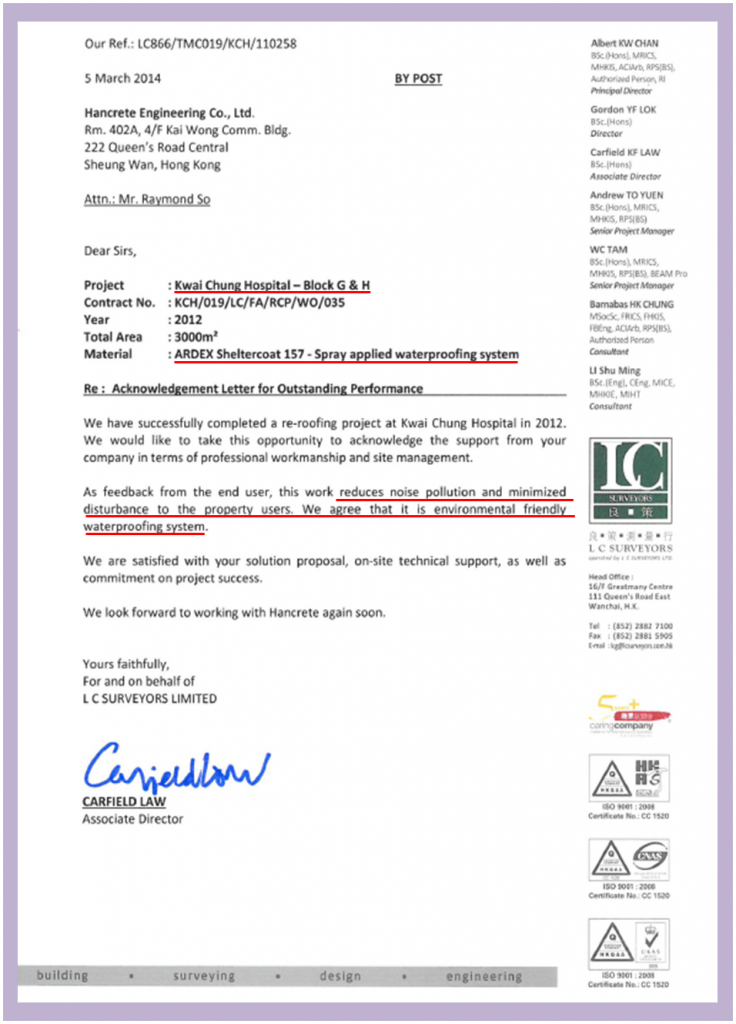 The consultant of this project was very satisfied with this job, he issued an acknowledgement letter after the work has been completed.